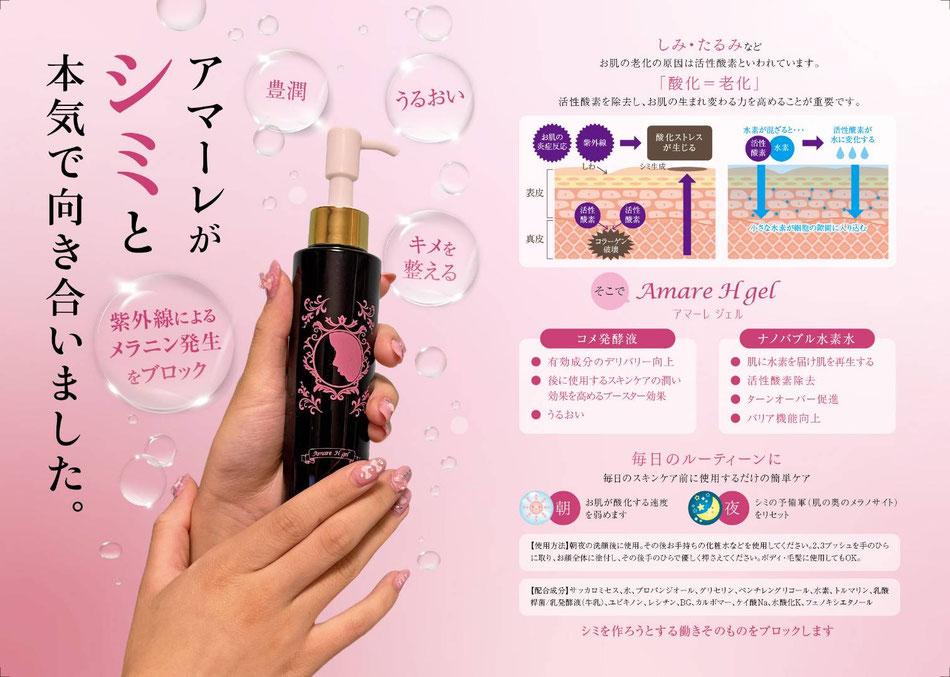 アマーレのジェルで毎日ルーティンのようにお肌に塗布。