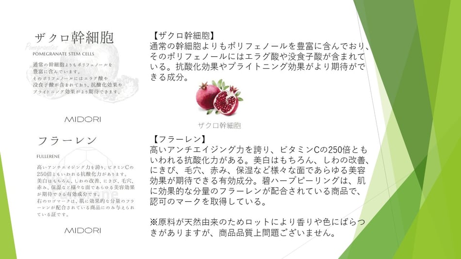 ちょっと【グリーンピール】に似ていますが、ハーブの様にしっかり剥けるのではなく、薄っすらと1枚ずつ世代交代しているのを感じられるのが特長。